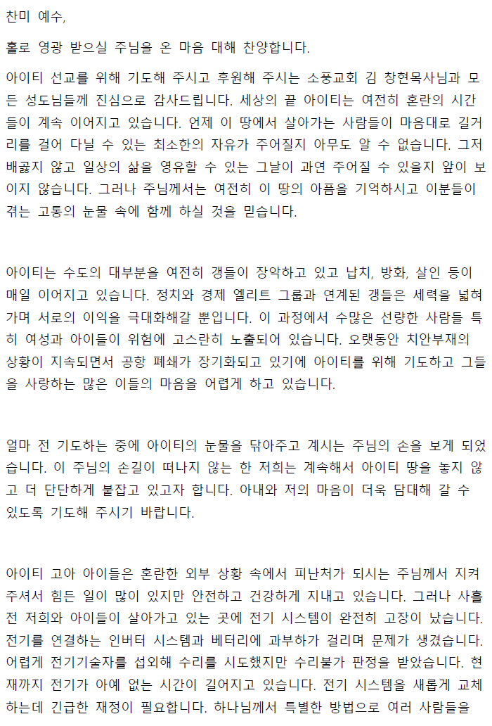 김월림 선교사(아이티) 9월 기도편지